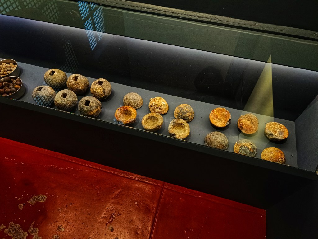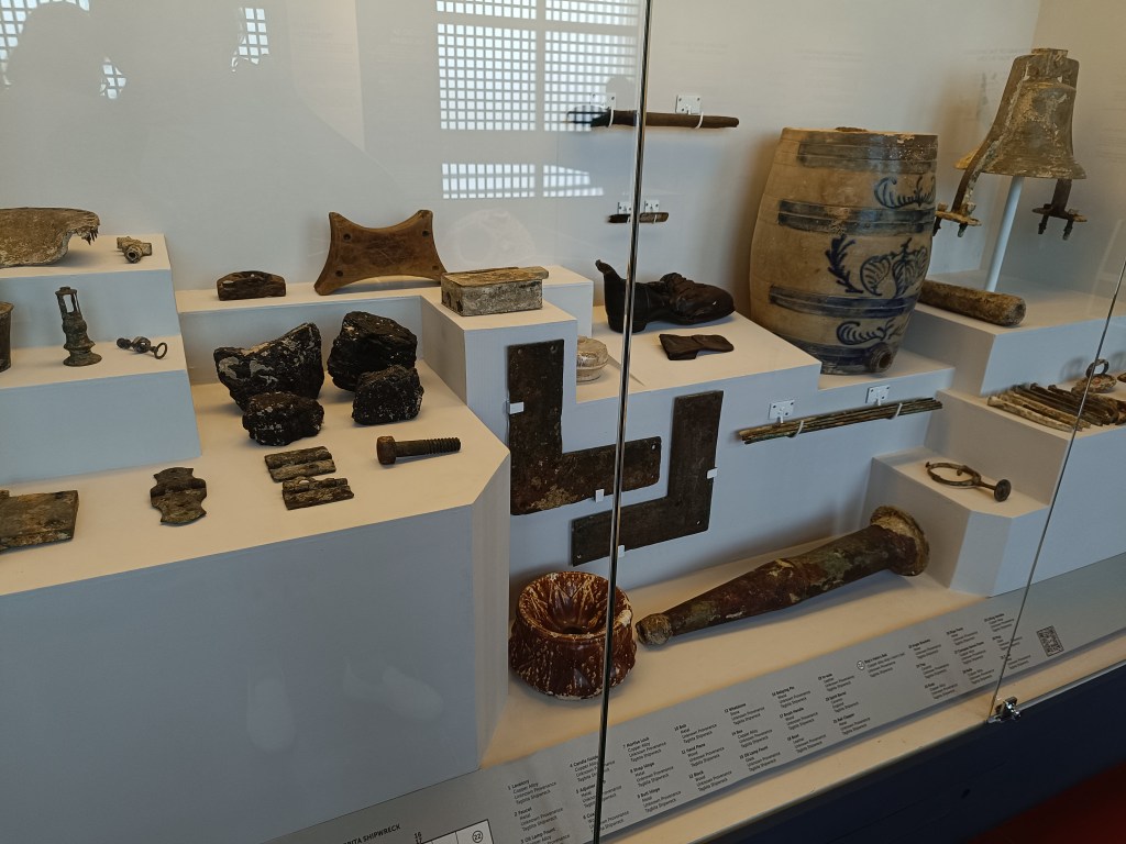 Discovered were some stone and ceramic wares, coins, jewelry, firearms, cannon balls, telescopes, and such, to name a few. But I think the artifacts that really got me fascinated was the Astrolabe, an astronomical device used for navigation and astronomy, the Slate which was the official logbook record of the voyage, and then the ceramic candle holders which I first thought were jars. The mechanism and intricacy of these three just blew my mind. That want to read that slate too was very deep.