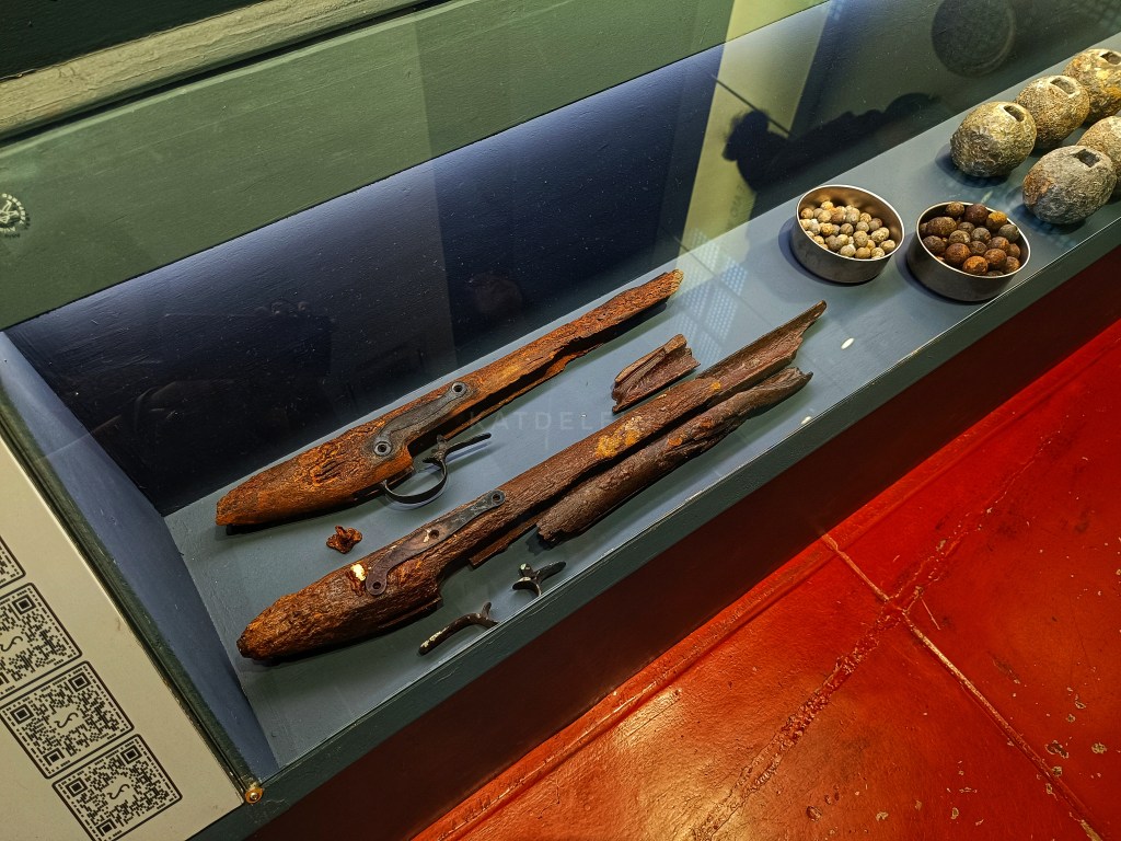 What fascinated me at Gallery three were the recovered artifacts discovered at the site where the galleon San Diego sunk. The ship was actually a trading ship docked in Cavite for reconditioning and repair, that was hastily turned into a warship by the Spanish Navy when the Dutch threatened to invade Manila. And because the cannons were too heavy for the ship, the water reached the cannon portholes which caused the ship to sink.